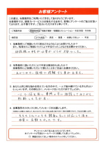 電話対応もこまめに連絡いただきありがとうございました。心強かったです。