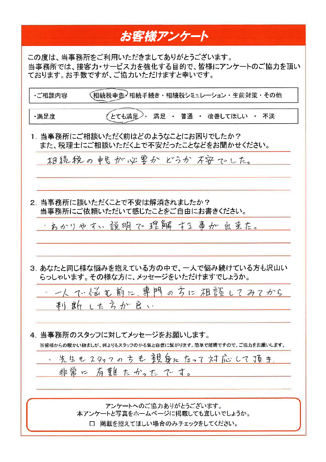 当事務所にご相談いただくことで不安は解消されましたか?当事務所にご依頼いただいて感じたことをご自由にお書きください。