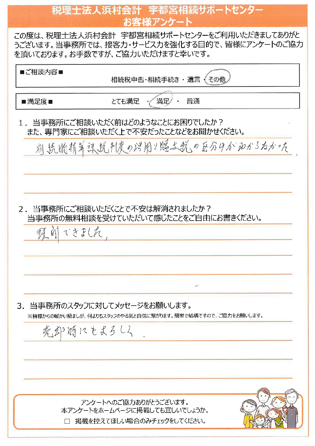 当事務所にご相談いただくことで不安は解消されましたか?当事務所にご依頼いただいて感じたことをご自由にお書きください。