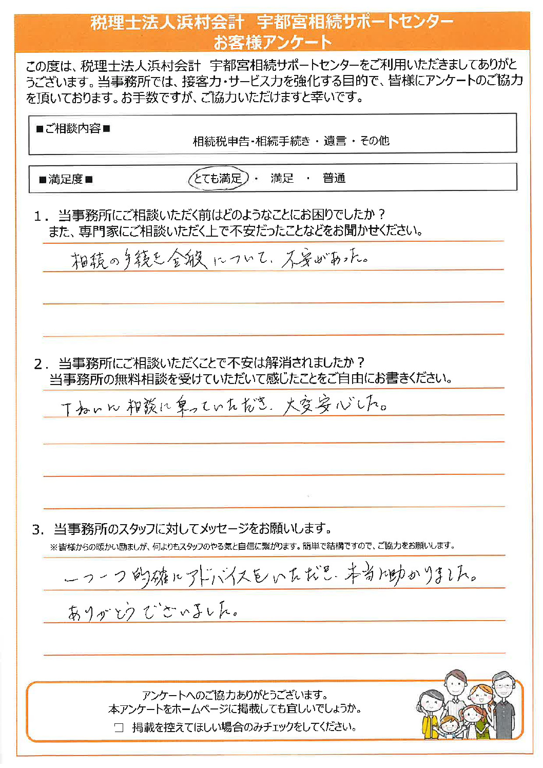 当事務所にご相談いただくことで不安は解消されましたか?当事務所にご依頼いただいて感じたことをご自由にお書きください。